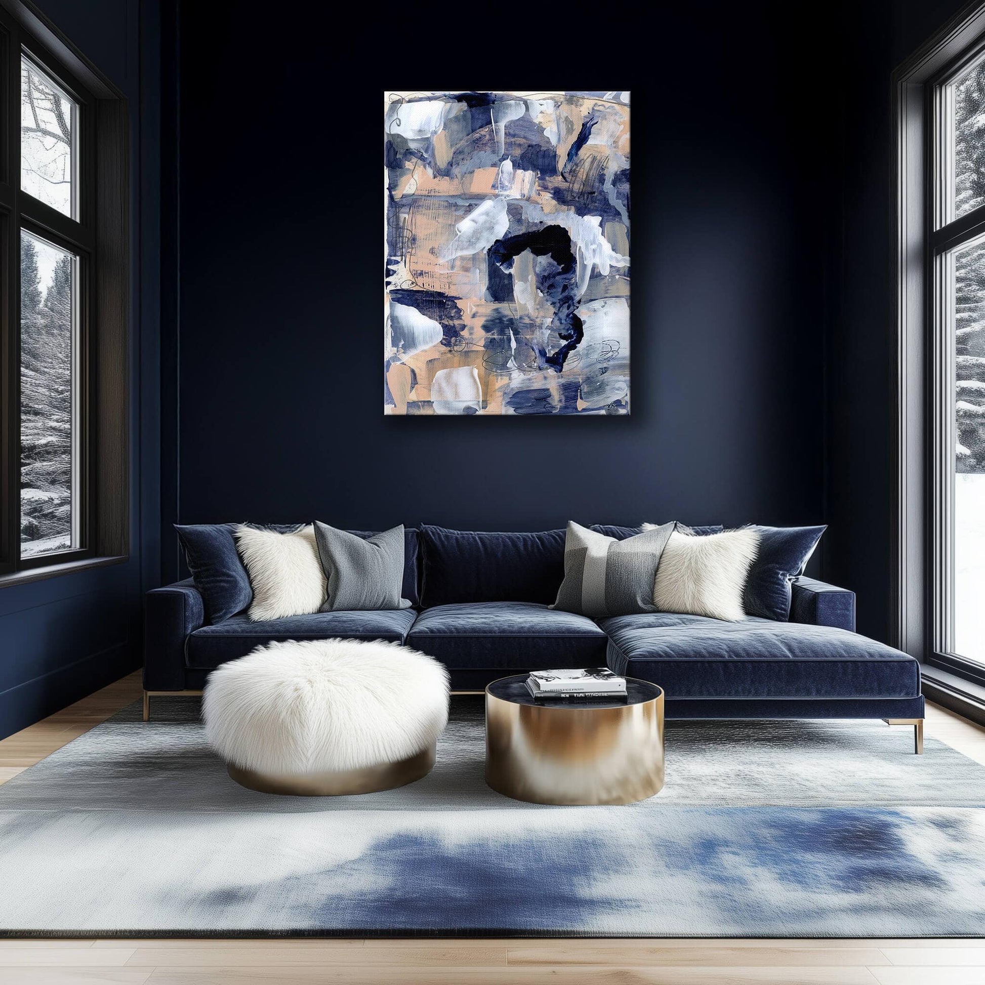 Ready To Hang Gallery Wrap Canvas "Confusion Blues" In Blue Drama